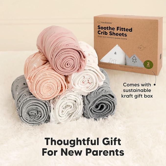 - 2-Pack Fitted Crib Sheets - Each KeaBabies Soothe Baby Crib Sheets set comes with two organic crib sheets for boys and girls that can perfectly fit the standard nursery crib mattresses sized at 52” x 28” and height of 3” to 8”.