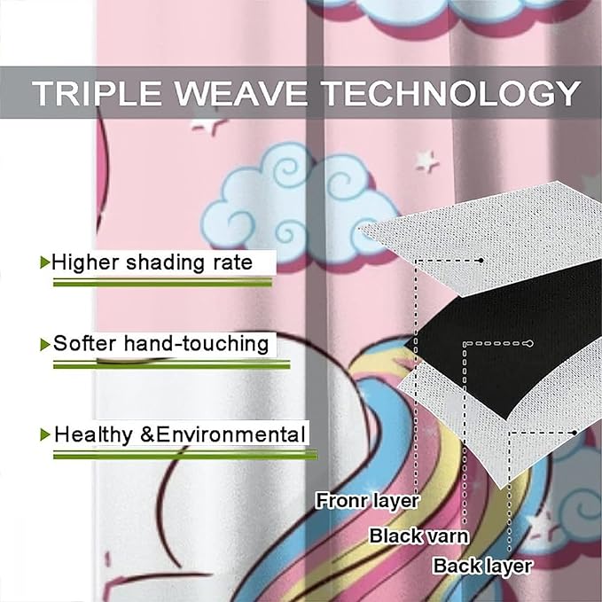 Unicorn Curtain for Kids Bedroom,Pink Cartoon Rainbow Darkening Curtains Decor Sliding Curtains Decorative Curtains for Girls Boys Baby Room,Living Room Decoration 42x63inch(107x160cm)