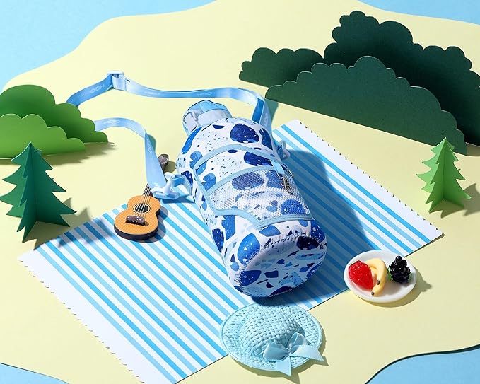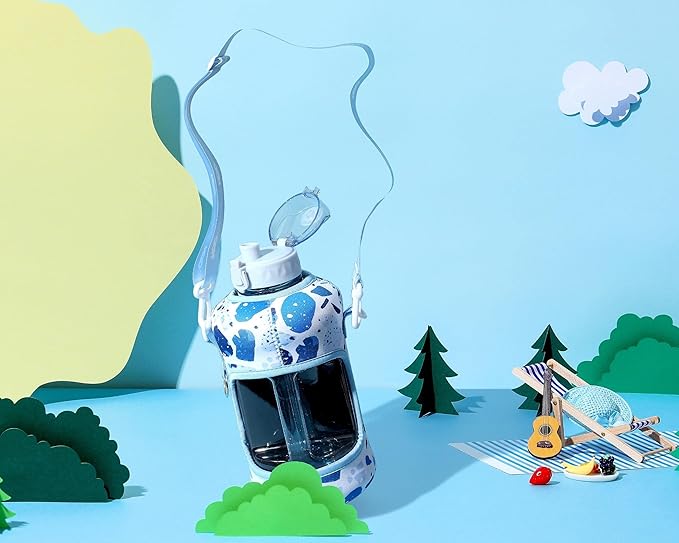 H2O Capsule 2.2L Half Gallon Water Bottle with Storage Sleeve and Removable Straw – BPA Free Large Reusable Drink Container with Handle - Big Sports Jug, 2.2 Liter (74 Ounce), Blue Collage