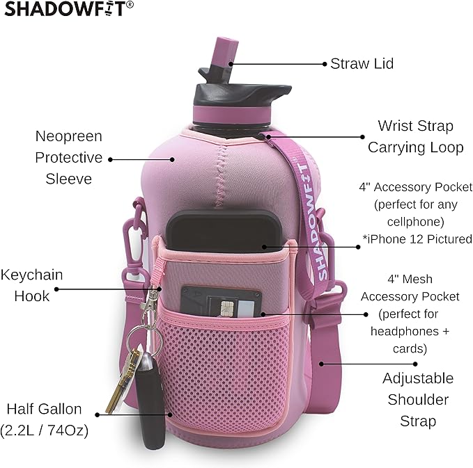 - Designed for a Great Workout: Our ShadowFit team wants you to be able to focus on getting in your best workouts! We have designed these large water bottles to not only keep you fully hydrated, but to create ease at the gym and during your outdoor fitness activities like hiking, biking, running, and sports. You can carry it around by the built-in handle, removable strap, or wrist-strap carrying loop while storing your keys, cell phone, cash, and cards.