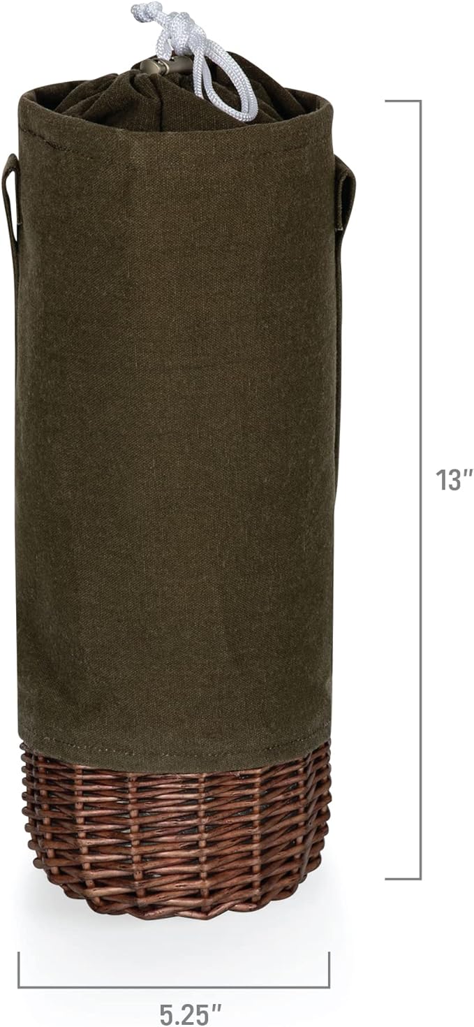 - Steamed handwoven willow and canvas basket with capacity for 1 wine bottle