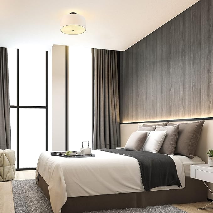 - WHITE FABRIC SHADE: offering a bright but subdued light, the white fabric shade looks elegant against your ceiling and provides stunning ambiance and décor
