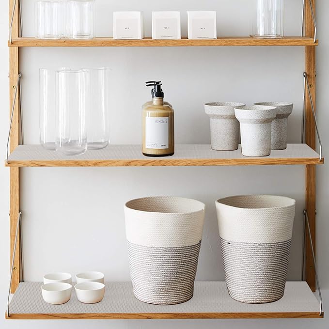 - EASY TO CLEAN AND CUT: When the kitchen shelf liner is stained with oil or other dirt, you can easily wipe it with mild soap or a damp cloth. This cupboard liner has the most popular pre-cut sizes so that you can easily cut it to any shape or size you want with scissors or a knife.