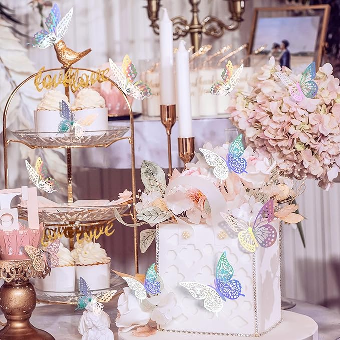 SAOROPEB 3D Butterfly Wall Decor, 72 Pcs 3 Styles 3 Sizes, Removable Metallic Wall Sticker Room Mural Decals for Kids Bedroom Nursery Classroom Party Decoration Wedding Decor DIY Gift (Laser)