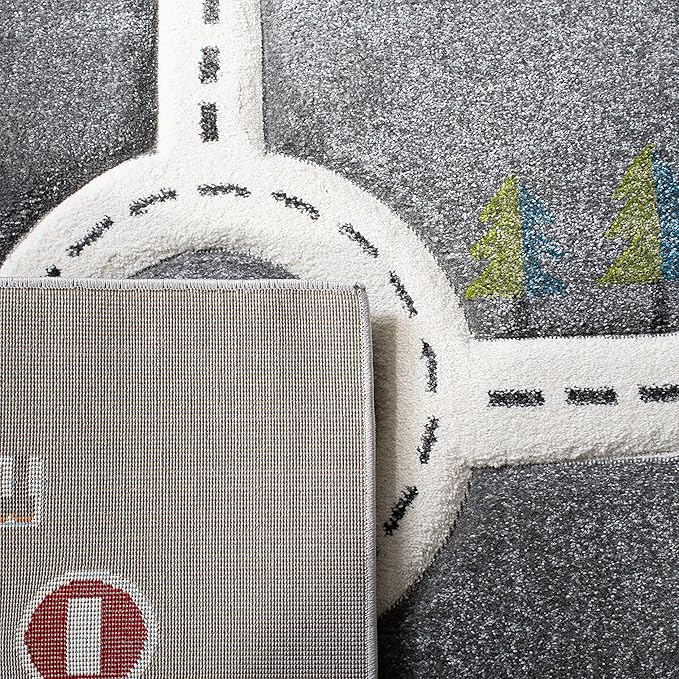 SAFAVIEH Carousel Kids Collection Area Rug - 4' Square, Grey & Ivory, Non-Shedding & Easy Care, Ideal for High Traffic Areas for Boys & Girls in Playroom, Nursery, Bedroom (CRK192F)