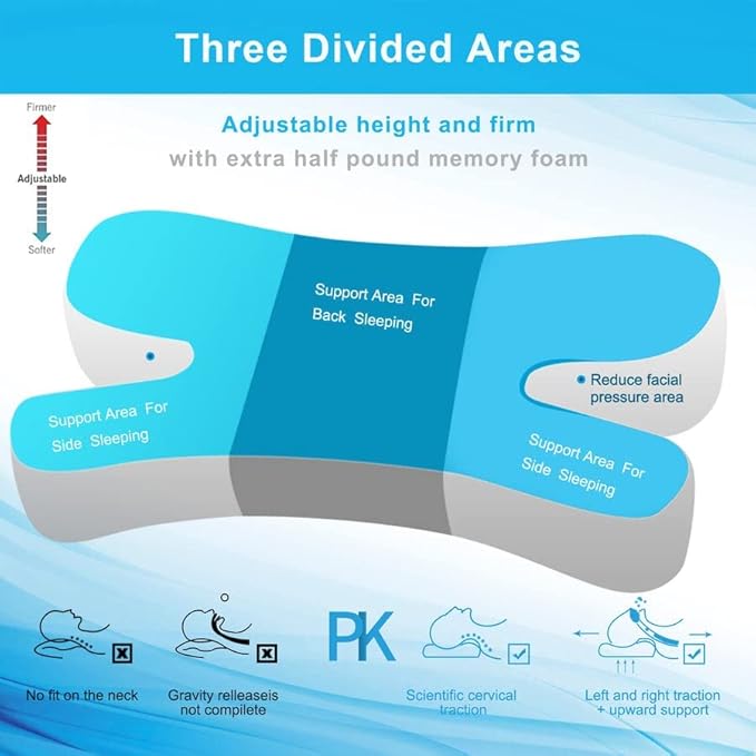 - đ ăAdjustableăWith memory foam pillow three divided areas, you can add or remove up to an extra half pound of included filling to change the thickness and/or firmness and softness of adjustable pillow in each individual three areas to be a neck support pillow.