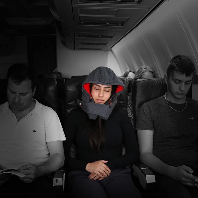 - Now the middle seat is not a problem, disconnect yourself from other passengers. The snug hood blocks out everything that usually disturbs you on a busy flight & also provides comfort and style.