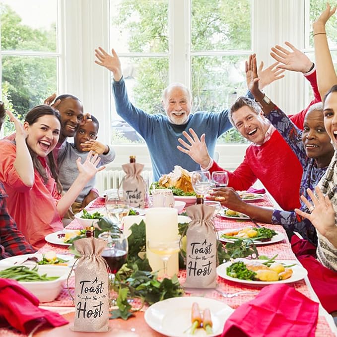 - A Toast for The Host Quotes Wine Bags -- This special wine bag is a thoughtful gift wrap for housewarming party gift, thanksgiving gift or christmas gift to your dad, mom, wife, sister, brother, coworker, neighbor and friends or family members.
