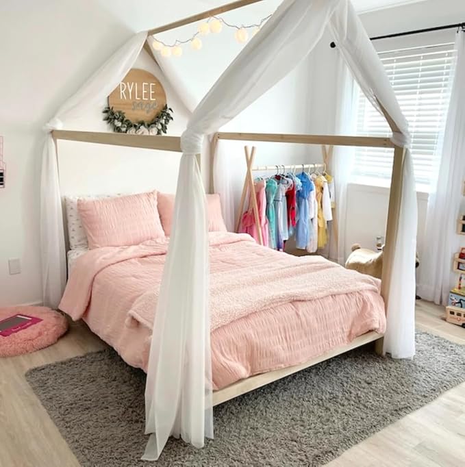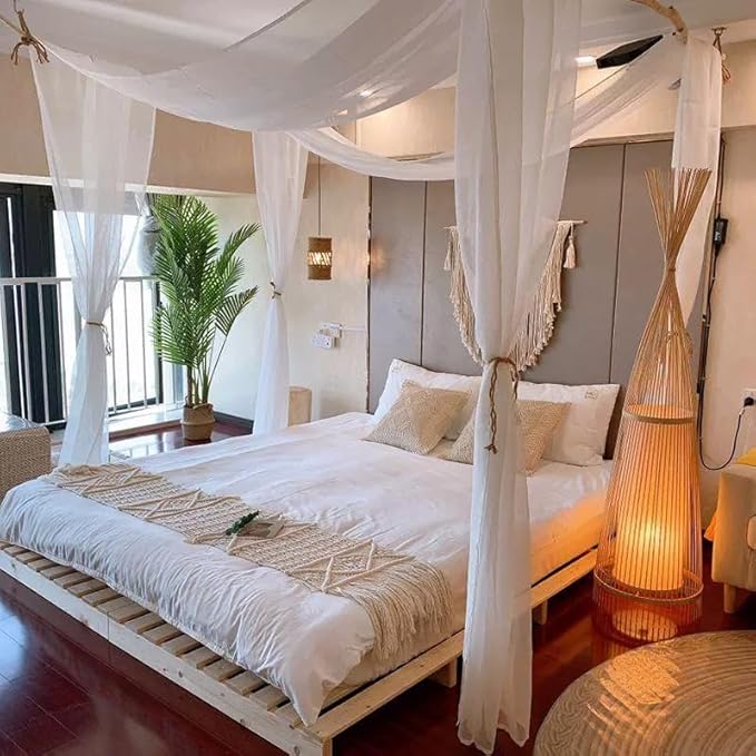 - Multiple Hanging Ways:Through adjusting the length of scarf flexibly with different hanging ways to achieve different look.Simply drape it across canopy rails for a simple style or tie on rod to add more ambiance and luxury to your rooms.
