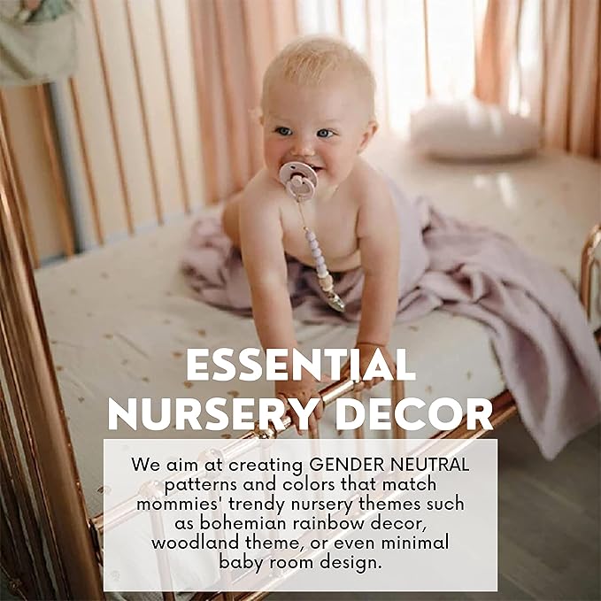 - Modern design: This cute unisex design is suitable for both baby boys and girls. Simple yet practical, you can use this tan color little boho rainbow muslin crib sheet to decorate your baby's nursery room into a mini kingdom for a photoshoot or give it as a gift on several occasions such as full-month celebration and baby announcement, baby shower party.