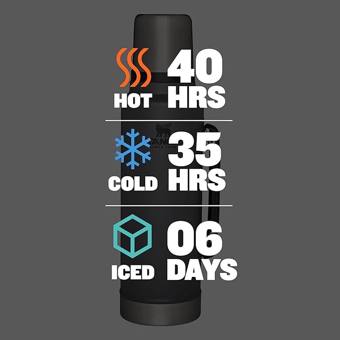 - KEEP IT HOT OR COLD: Our Stanley Classic Vacuum Bottle is made with superior insulation that keeps liquids (soup, coffee, tea) hot or cold drinks cool for up to 24 hours. It’s also made with BPA-free materials, keeping its contents safe to consume