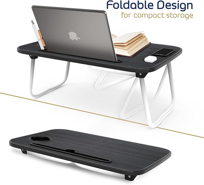- BONUS LAPDESK: The laptop desk features a cup, pen, and tablet holder so you can keep your stuff neat in one place. The desktop measures 19” x 11.75”. Use it as a laptop workstation, laptop table for bed, a children's bed table, a mini writing table, laptop couch table, or a standing table for office work. It becomes the great balance for relaxing and productivity.