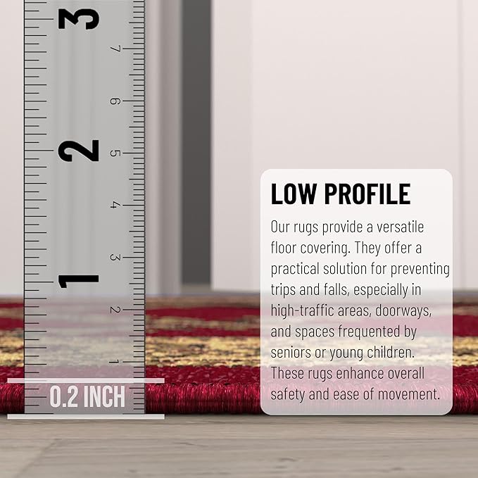 - [ULTRA THIN]: A ultra thin pile thickness of 0.2 inches offers ideal functionality that is perfect for busy areas, underneath furniture, and in entryways as it will not obstruct doorways.