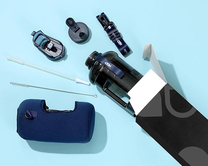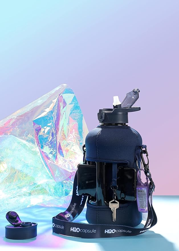 - HALF GALLON HYDRATION WITH COVERED STRAW LID: The extra large 2.2L / 74 oz plastic jug holds all the water you need to stay hydrated while you exercise. The reusable half gallon comes with a leak-proof & dust-proof covered straw lid, which helps protect the mouthpiece and flips open with a click of a button. The straw-lid is air-sealed: Run straw brush through mouth piece before initial use. The H2O Capsule bottle with storage sleeve comes with a bonus straw cleaning brush.