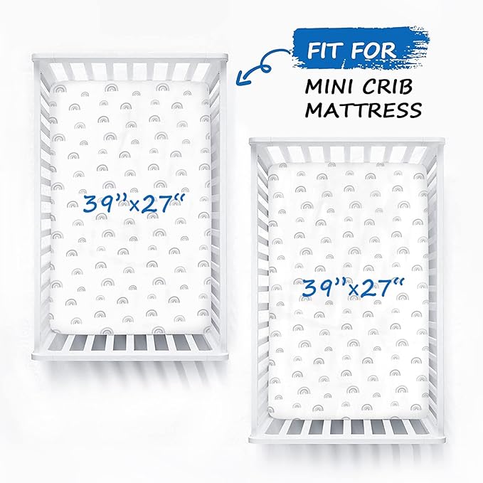 Pack n Play Sheets 2 Pack (27"x 39"x 5"), Mini Crib Sheets Set for Baby Girls Boys, Portable Playard Sheets, Ultra Soft Microfiber Pack n Play Mattress Cover Sheet, Rainbow