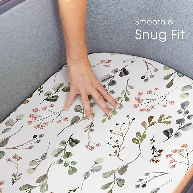 Stretchy Ultra Soft Fitted Bassinet Sheets 2 Pack, Universal Fitted for Bassinets Baby Cradle Moses Basket Oval Rectangle Mattress, Watercolor Rose and Flora Bassinet Sheet for Baby Girls