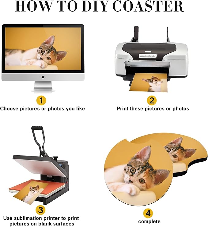 - 【A wide range of applications】:Heat sublimation coasters can be used in cars, kitchens, bedrooms, cafes, etc. for placing coffee cups, wine cups, tea cups and glass bottles.