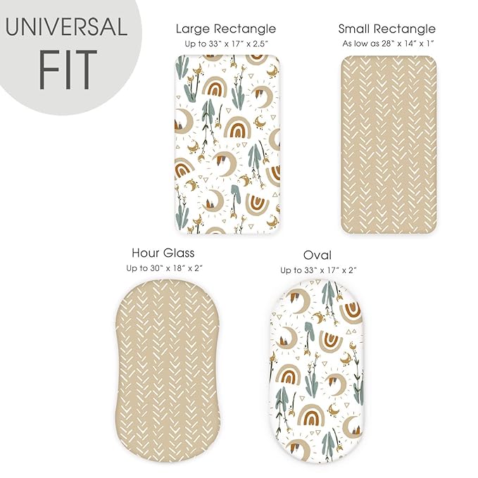 - Universal Fit – Measuring 32" x 16" x 5". Our bassinet sheets fit almost all standard oval, round, rectangle, hourglass shaped bassinet mattress. Each bassinet mattress pad cover comes with an elastic band encased at the bottom for safety.
