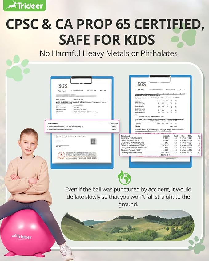 - 【Quality Parent-Child Time】When using our kids' yoga balls with other Trideer exercise balls for adults, you can exercise and play with your kids. It is a superb way to spend quality time with your kids exercising together on balancing balls.