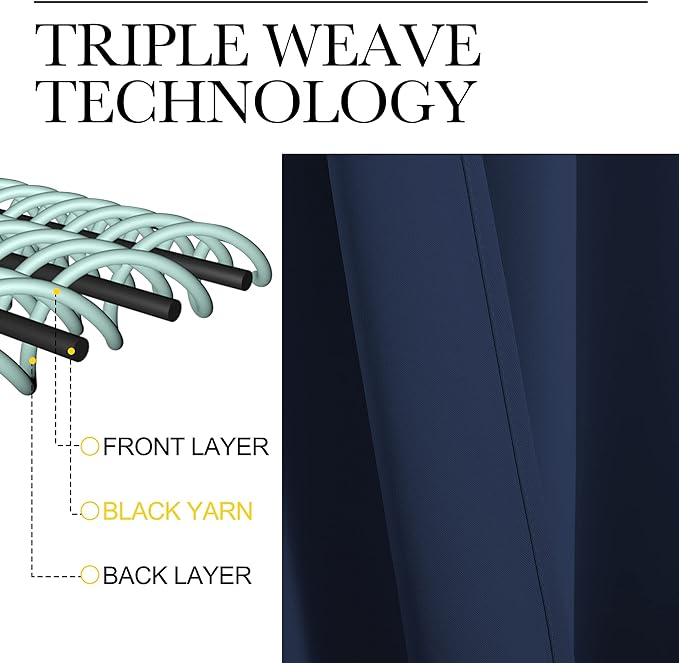 - Amazing Material: Super heavy and soft Blackout Curtain Panels are very upmarket. Besides, 85%-99% light blocking, thermal insulated, soundproof, Fade-resistant, energy-efficient. Thread trimmed and wrinkle-free, both sides are the same color.