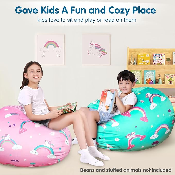 - Great Stuffed Animal Storage: X-Large size unicorns bean bag chair cover at 31" and could hold up to 90 small stuffed animals toys (Not Included). The cute design adds a charming touch to the room. And cool patterns to choose from