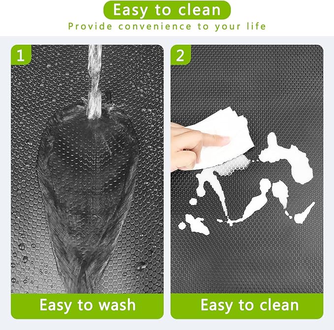 - CONVENIENT TO CLEAN: Kitchen cabinet drawer mats is washable and waterproof. When the refrigerator shelf liner is stained with oil or other dirt, you can easily wipe the dirt with mild soap and a damp cloth or sponge and fast to dry. It’s perfect decor for organizing your space and home!