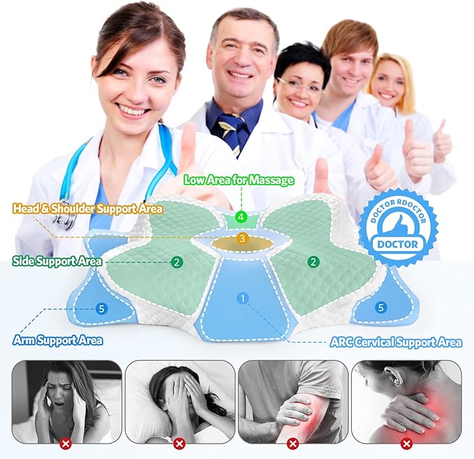 - SUITABLE FOR DIFFERENT SLEEPING POSITIONS: The ergonomic pillow design adapts to different sleeping positions, whether you are sleeping on your back, side or stomach. The two wings of the pillow are equipped with butterfly support pillows that can prevent your arms, supporting your neck and your arms, making your sleeping on your back more comfortable, and also preventing the pillow from deforming.