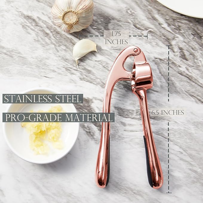 Premium Garlic Press, Professional Garlic Mincer, Easy to Squeeze and Clean, Rust Proof & Dishwasher Safe, Efficient Ginger Crusher - Rose Golden