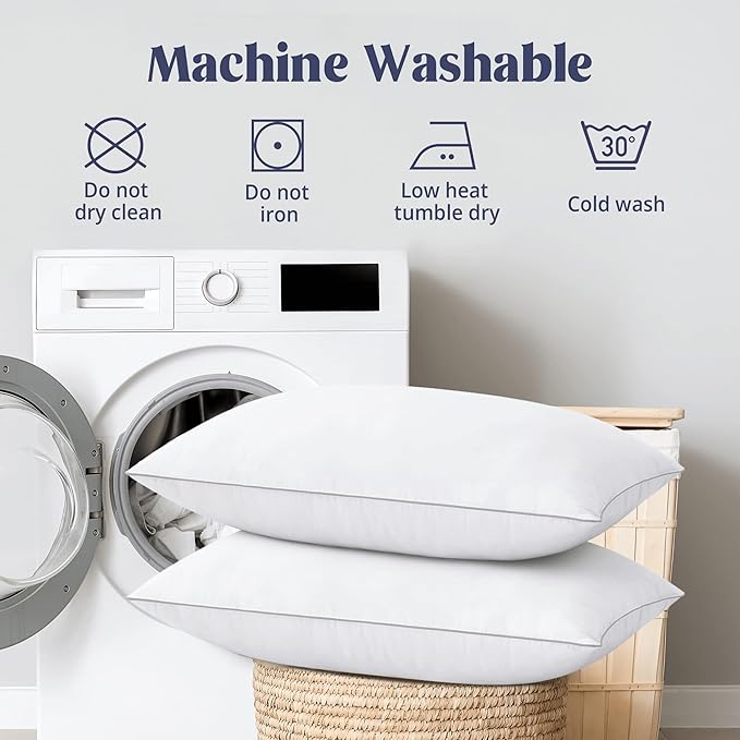 - 【USE TIP & EASY CARE】 - Fluffing your pillows daily by tapping or squeezing can help them return to their normal shape and force the inside air making the pillows fluffy again. The feather pillow is machine washable.Machine wash cold separately gentle cycle, tumble dry low.