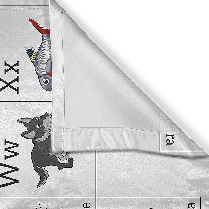 Ambesonne ABC Long Kitchen Curtains, Alphabet Learning Chart Cartoon Animals Names Letters Upper and Lowercase Print, Two Panels Drapes with Rod Pocket Room Decor, 55" x 45", Black Brown