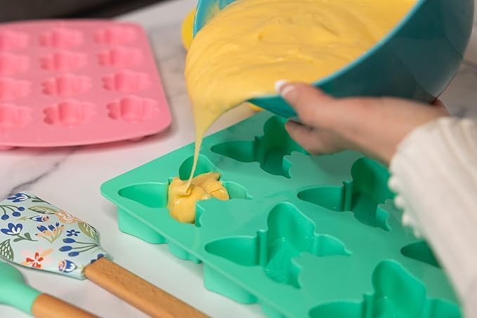 - Includes 1 butterfly shaped silicone cupake mold, 1 daisy shaped silicone cake mold, and 1 flower shaped silicone mini candy and chocolate mold, 1 spatula, 1 pastry brush and a recipe leaflet