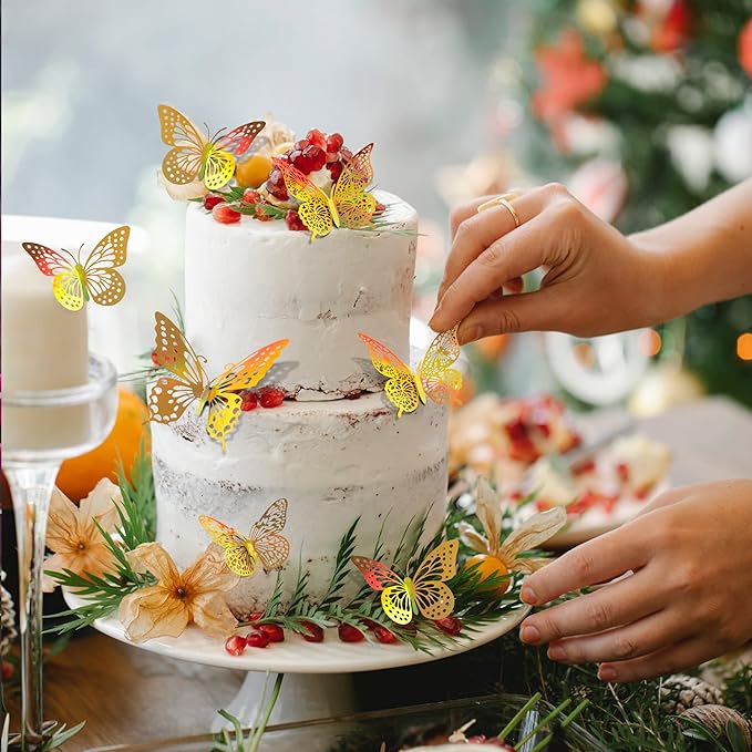 - 【Effortless Install】Fold butterfly wings at an angle. Stick the butterfly with glue dots on anywhere you want and a fluttering gold butterfly is ready.