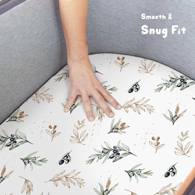 Stretchy Ultra Soft Fitted Bassinet Sheets Set 2 Pack, Cradle Sheet Universal Fit for Rectangle, Oval or Hourglass Bassinet Pad/Mattress Safe and Snug, Stylish Watercolor Flora and Olive