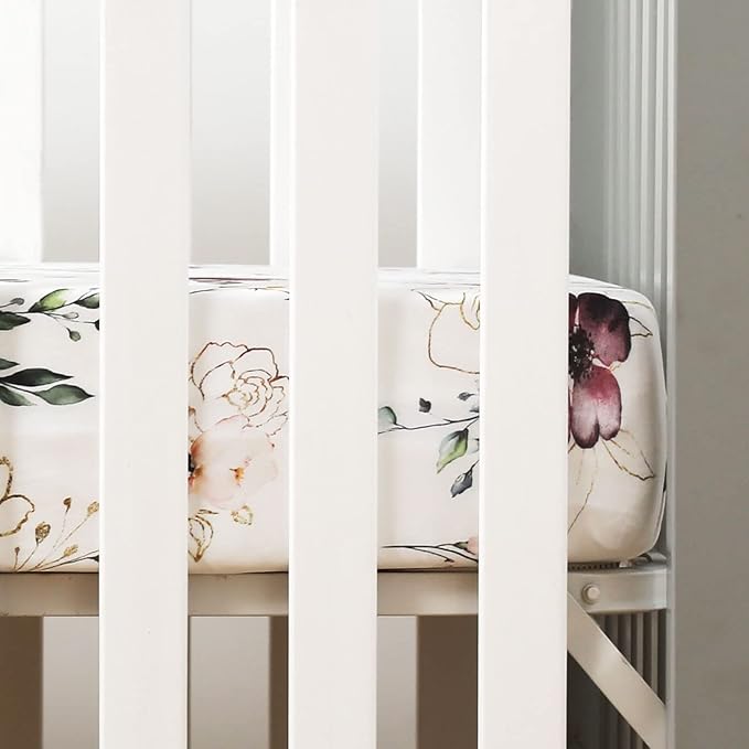 - Apple It Within Seconds: Thanks to the elastic bottom, our fitted crib sheet comes in a classic, stylish watercolor purple flora pattern that will put the finishing touches to any bedding. These crib sheets for girl and boy give your darling a serene and calm bed to rest in.
