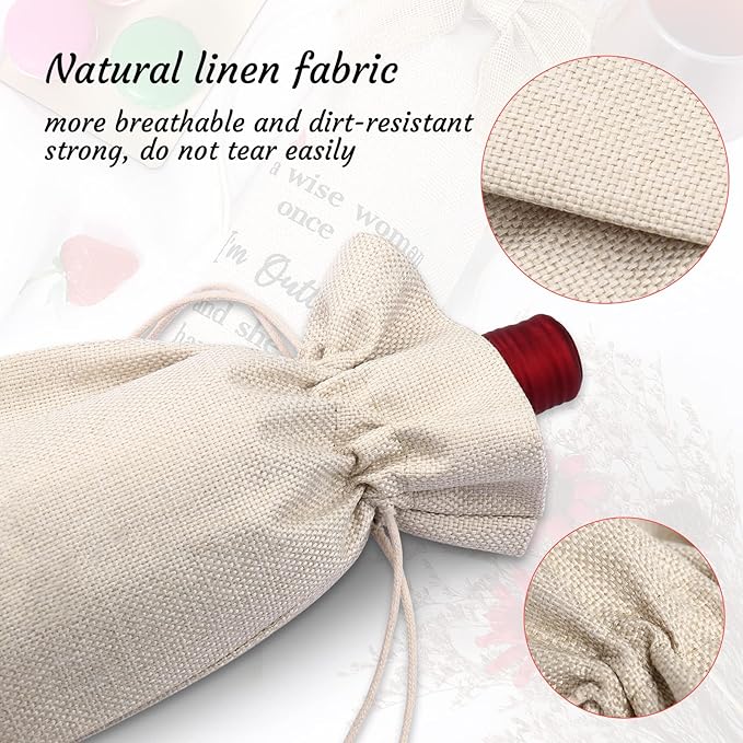 - High-Quality Fabric: Natural coarse linen fabric makes the wine bag more breathable and dirt-resistant. The fibers of linen are strong, do not tear easily, It's washable, reusable, and eco-friendly.