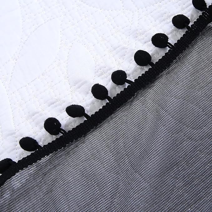 - Polyester material: Pom Pom Design, Elegant princess tones, quality texture, soft hand feeling.A good decoration for any ceremony party,wedding stage ,baby shower,kid‘s room,birthday, photo backdrop,outdoor events, Valentine’s Day, Thanksgiving Day, Christmas, New Year and more.