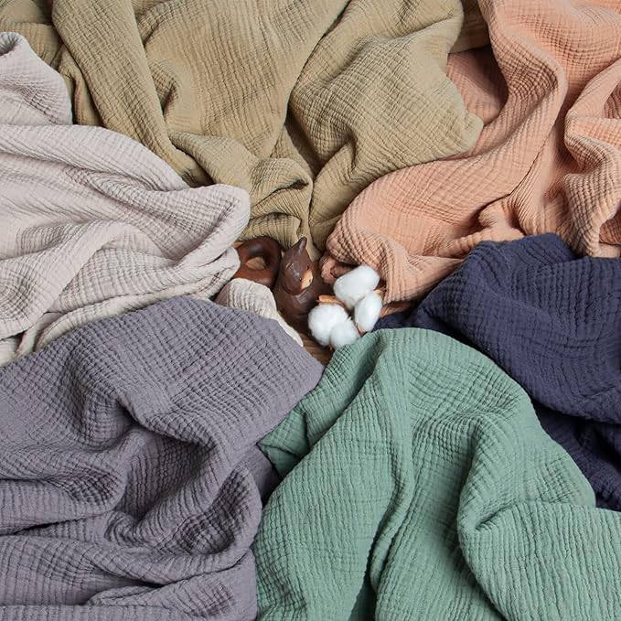 - EASY TO CARE: Our muslin baby blanket is machine washable and tumbles dry, saving you time and giving you more time to play with your baby. The texture is more evident and beautiful after cleaning. Please note that the tolerance for muslin cotton material is approximately +-1inch