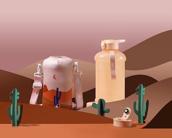 - HALF GALLON HYDRATION WITH COVERED STRAW LID: The extra large 2.2L / 74 oz plastic jug holds all the water you need to stay hydrated while you exercise. The reusable half gallon flask comes with a leak-proof & dust-proof covered straw lid, which helps protect the mouthpiece and flips open with a click of a button. The straw-lid is air-sealed: Run straw brush through mouth piece before initial use. The H2O Capsule bottle with storage sleeve comes with a bonus straw cleaning brush.