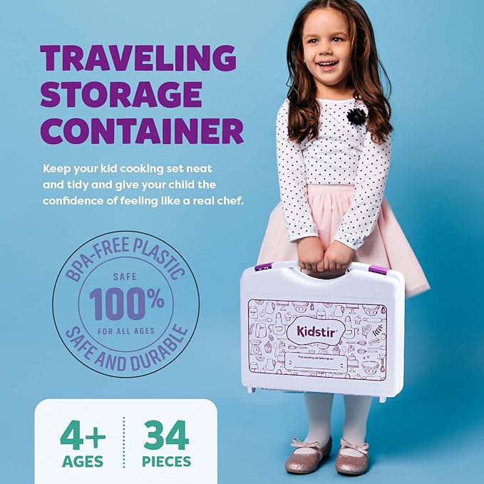 KIDSTIR Kids Cooking Sets Kids Baking Set 34 Piece Real Cooking Set for Kids with Organizer Carrying Case, Kids Cooking Utensils for Girls and Boys Kid Cooking Gift Set and Baking Set for Kids