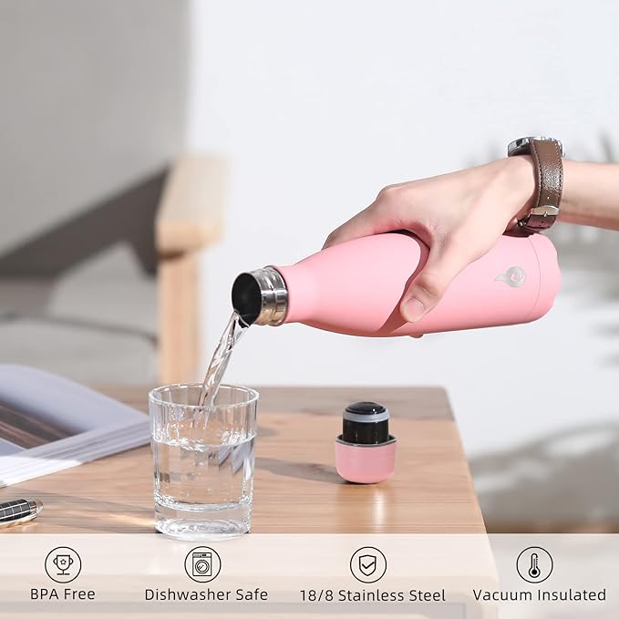 - Keep Drinks Cold & Hot: Adopt double wall vacuum insulation design, keep your drinks ice cold for 24 hours and hot for 12 hours within our highly performed insulated water bottle