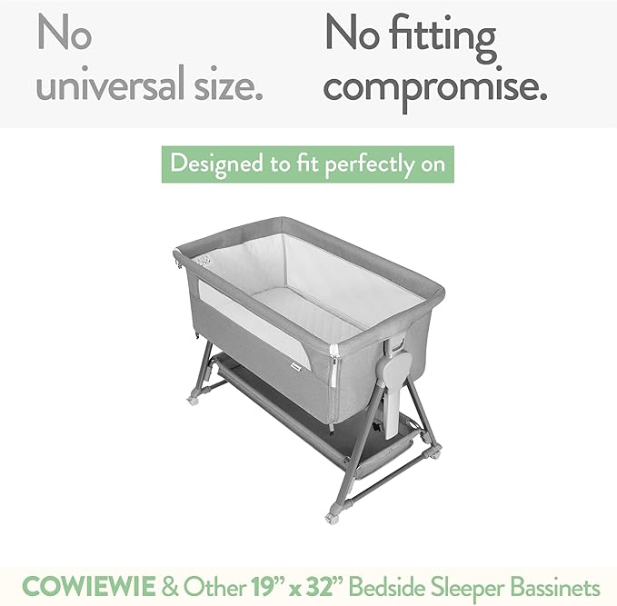 - ✔ PERFECT CUSTOM FIT – EASY ON, WON’T SLIP OFF: Every Joey + Joan mikey bassient sheet fits SPECIFIC MODELS, so they easily slip onto your baby mattress, with ZERO WORRY THEY’LL ACCIDENTALLY SLIP OFF over baby’s head. These 19 x 32 bassinet sheets are compatible with Cowiewie bedside sleeper crib