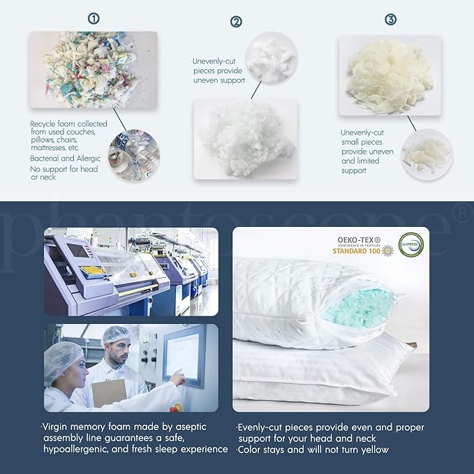 Phantoscope Memory Foam Pillows for Sleeping, Shredded Memory Foam Cooling Pillows Queen Size 2 Pack - Adjustable Bed Pillows for Hot Sleepers, Firm Pillow for Neck Shoulder Pain, Queen