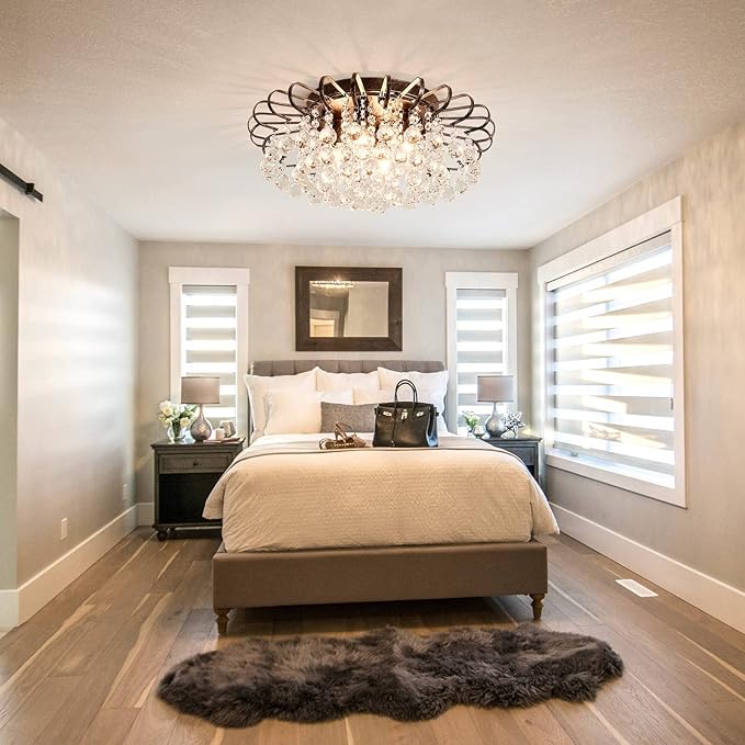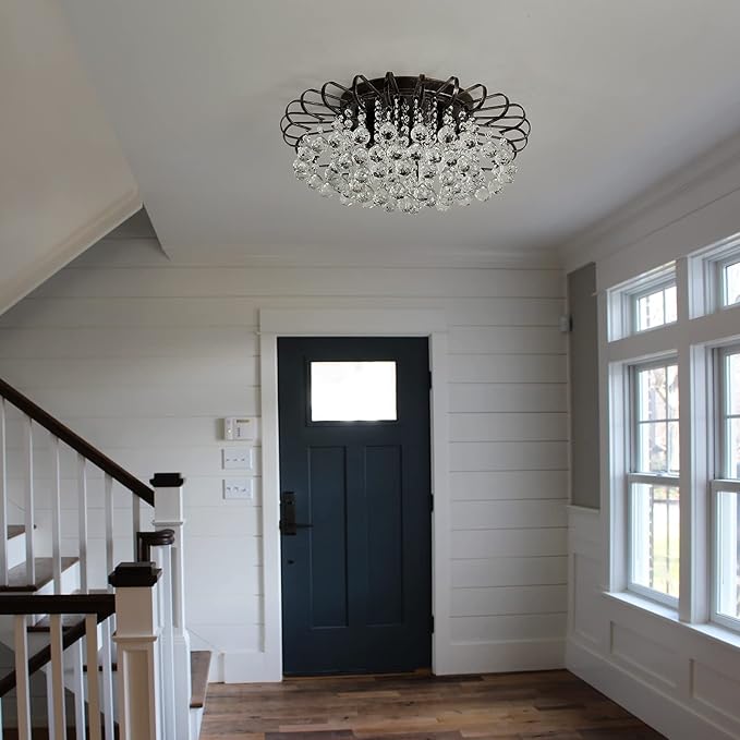 - Bulb Base:Classy stylish crystal ceiling light is compatible any E12 bulbs,4 bulbs is required(bulbs not included). It is also can be dimmable when you used a dimmable bulbs and compatible dimmer switch.you can enjoy bright light or calming dim light