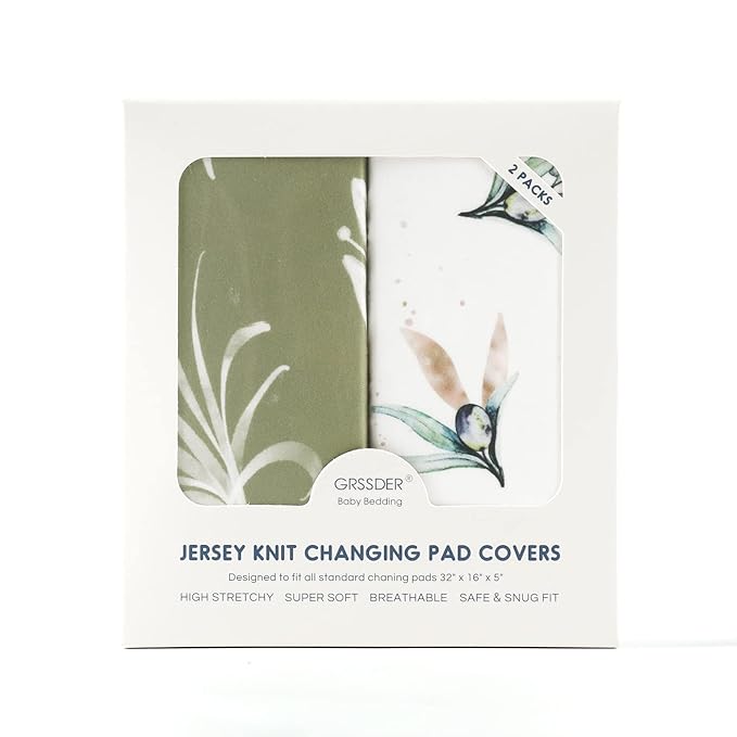 - Ultra Soft & 4-way Stretch: Made of 100% high quality soft stretchy jersey knit fabric. GRSSDER changing pad covers offer a breathable, sweat-absorbent tee shirt like feel for exceptional comfort, providing your little ones a safe and to stay in place throughout the day.