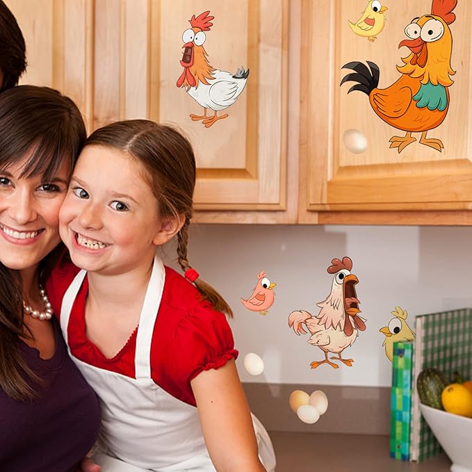- Wide Usages: The funny chicken wall decals suitable for kids room, playroom, classroom, living room, kitchen, pantry, refrigerator Decor.