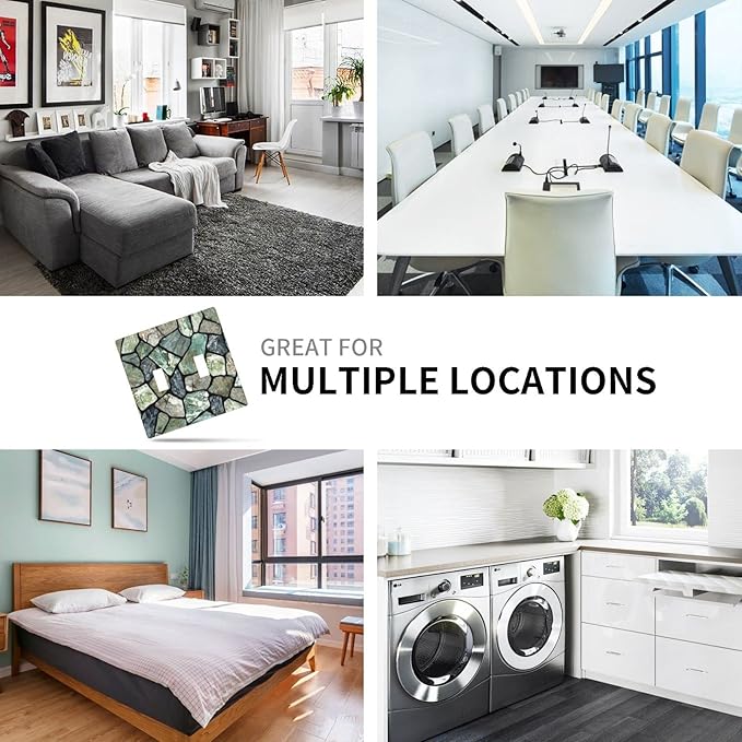 Green Stone Texture Double Toggle Light Switch Wall Plate Cover Decorative 2-Gang for Room Bathroom Bedroom Home Kitchen Two Lightswitch Polycarbonate 4.5" x 4.6"