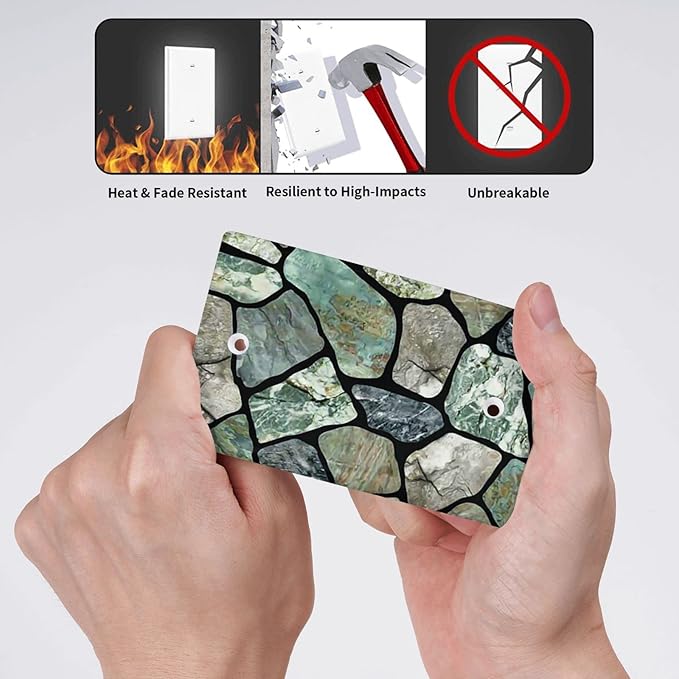 Green Stone Texture Single Blank Switch Wall Plate Cover Outlets Decorative 1-Gang for Electrical Room Bathroom Bedroom Home Kitchen One Receptacle Polycarbonate Power Gear 4.5" x 2.76"