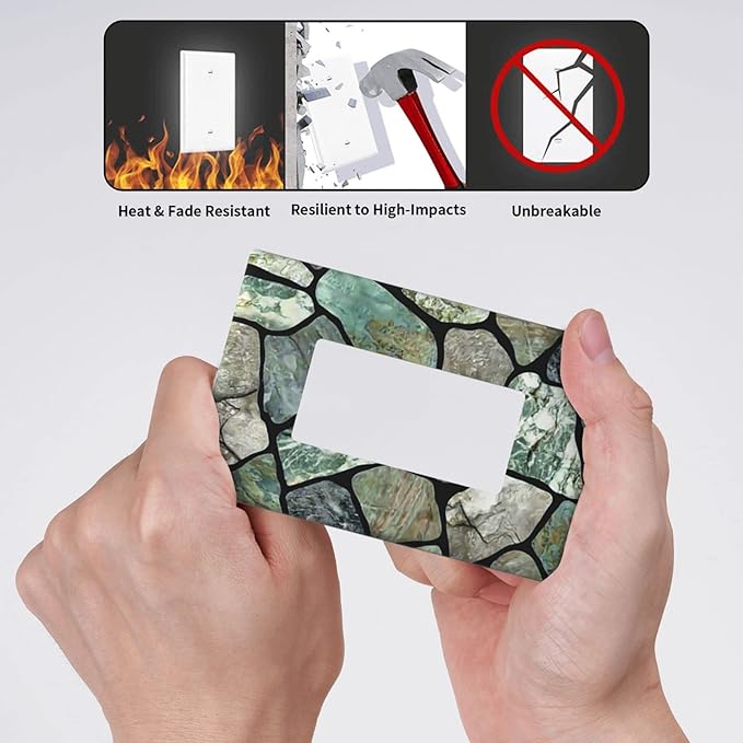 Green Stone Texture Single Rocker Light Switch Wall Plate Cover Decorative 1-Gang for Outlet Room Bathroom Bedroom Home Kitchen One Decora Receptacle Polycarbonate Power Gear 4.5" x 2.76"