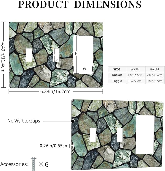 - Specifications: Length 4.5” x width 6.38” , 3-gang standard size, gloss theme pattern wallplate.