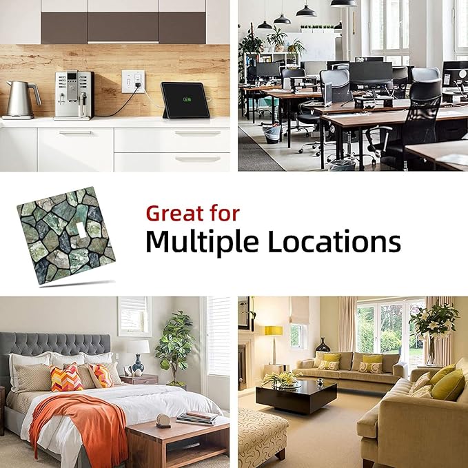 Green Stone Texture Combo Single Blank 1 Single Toggle Light Switch Wall Plate Cover Decorative 2-Gang for Electrical Room Bathroom Bedroom Home Kitchen One Receptacle 4.5" x 4.6"